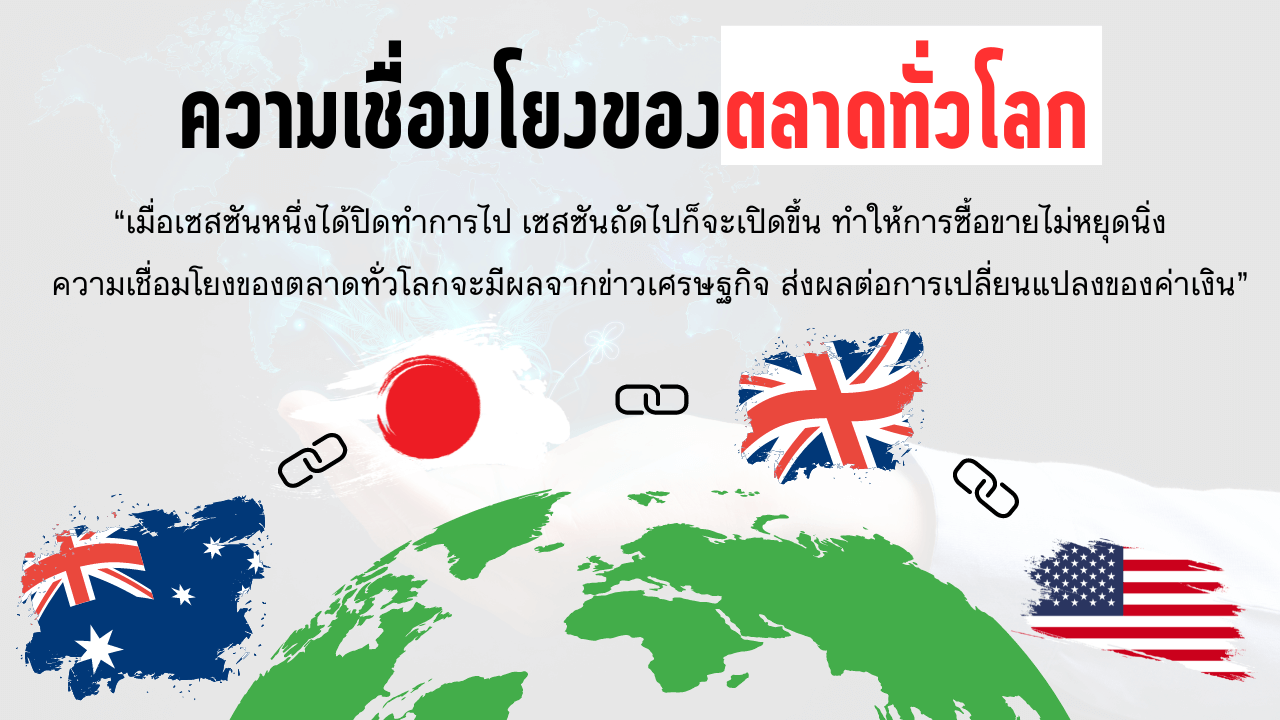 - ความเชื่อมโยงของตลาดทั่วโลกจะมีผลจากข่าวเศรษฐกิจ ส่งผลต่อการเปลี่ยนแปลงของค่าเงิน